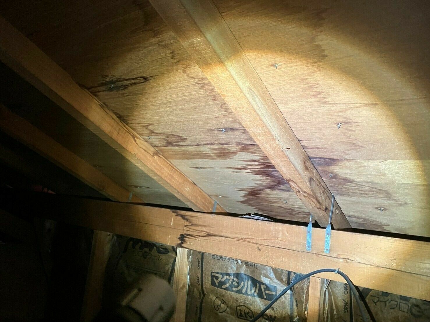 過去に2回屋根の塗装をされたそうですが、屋根裏に上がらせていただくと・・・